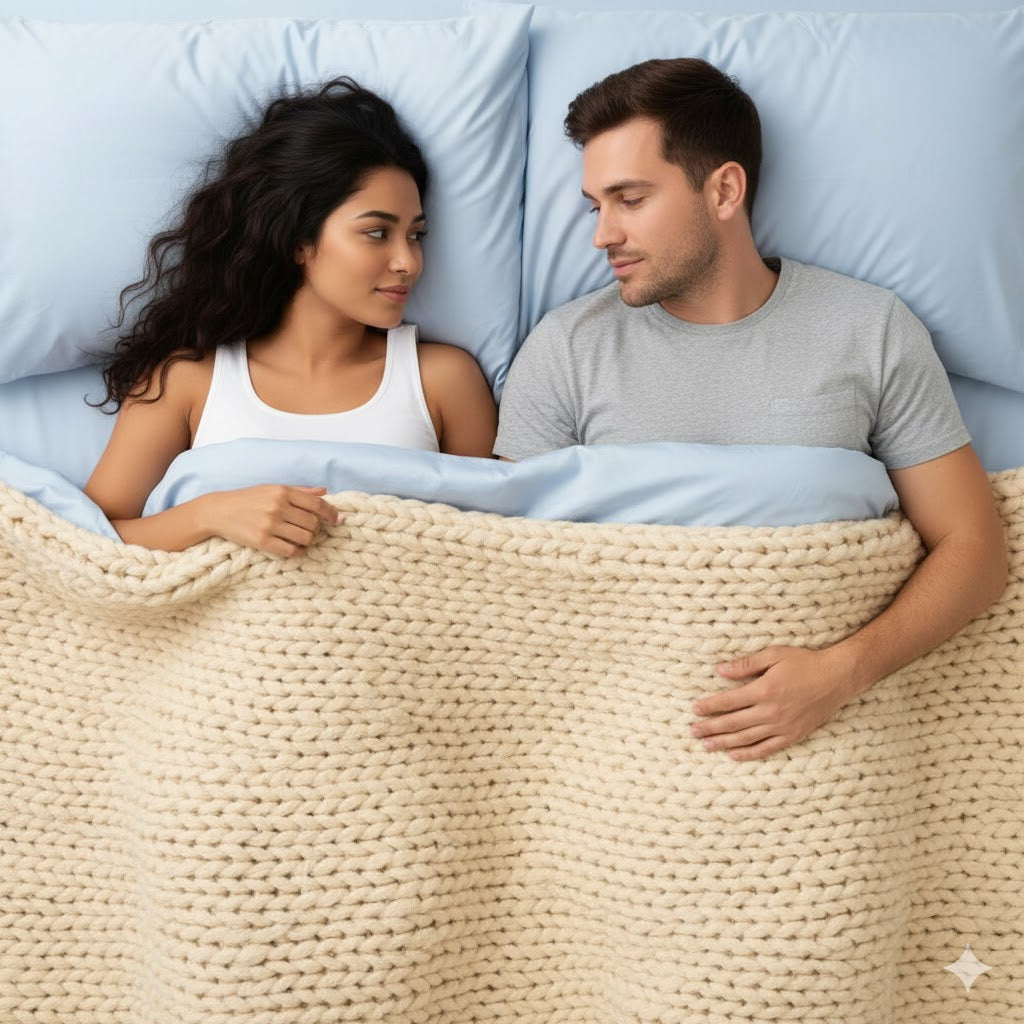 Sleeping under gentle, even weight activates Deep Touch Pressure, which calms the nervous system, increases serotonin and melatonin, and reduces stress hormones.